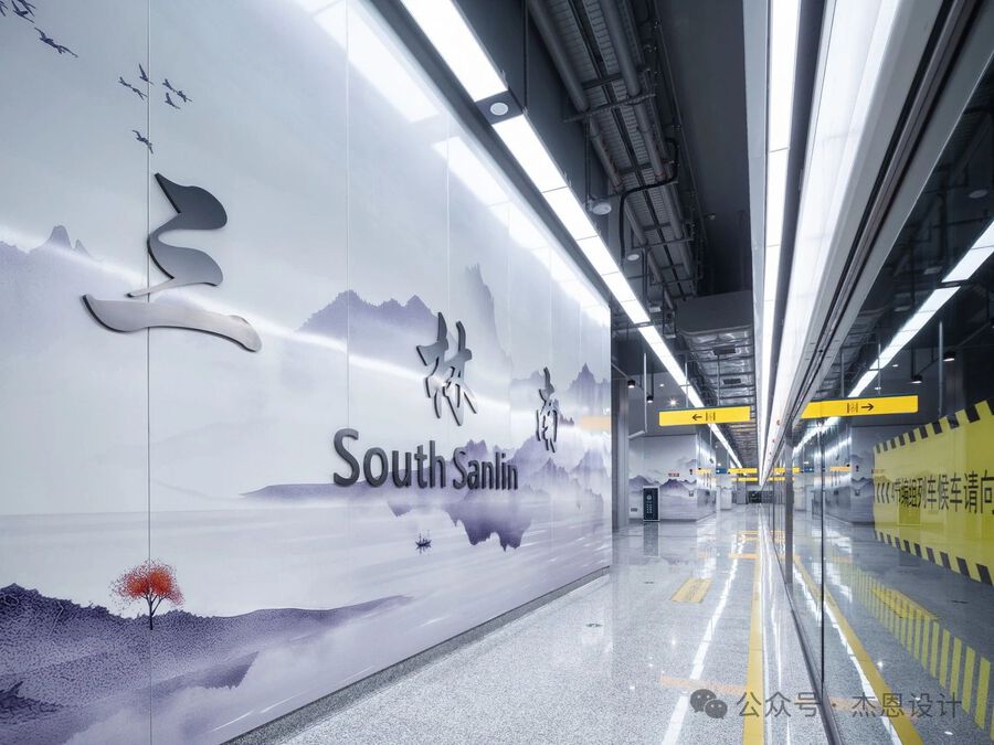 上海市域机场线是国内首条与国铁网络互通互联的市域铁路示范工程。J&A在中春路站的设计中,提出“水韵石桥”的概念,提取石拱桥的形态以及河流的动态元素,应用到建筑及室内造型之中。三林南站以“入林”为设计核心,通过渐变的生态色块作为背景,实现城市与自然的视觉链接,使乘客置身于一个绿色空间中。